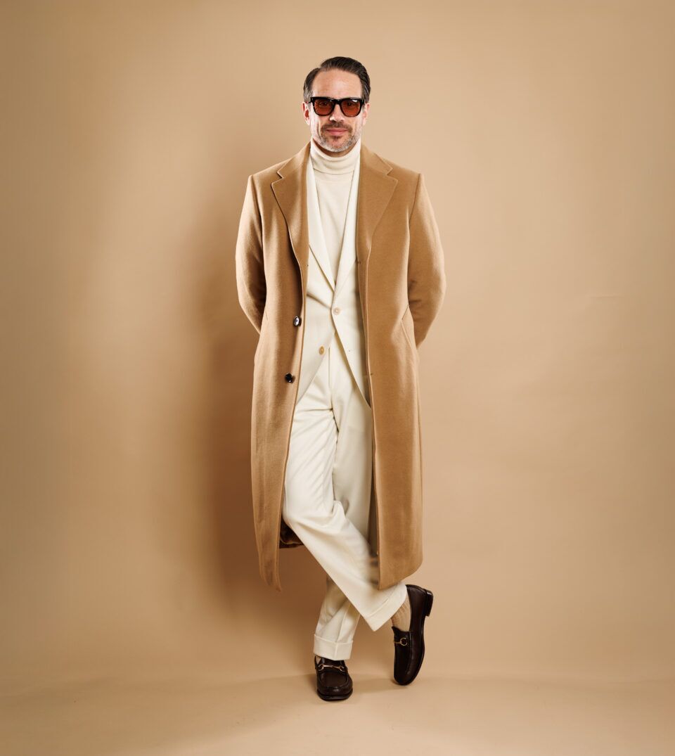 The lighter palette brings clarity and sophistication to a fabric typically reserved for deeper tones. The result is a winter suit that feels polished and modern, with an ease that stands apart from standard navy and gray.