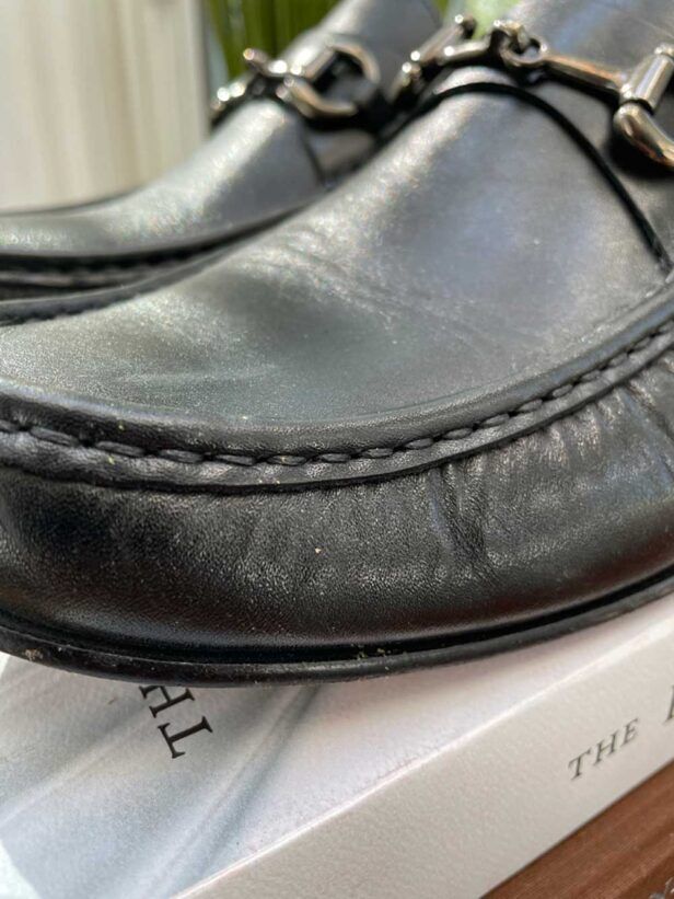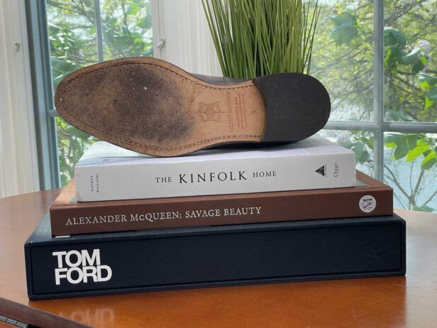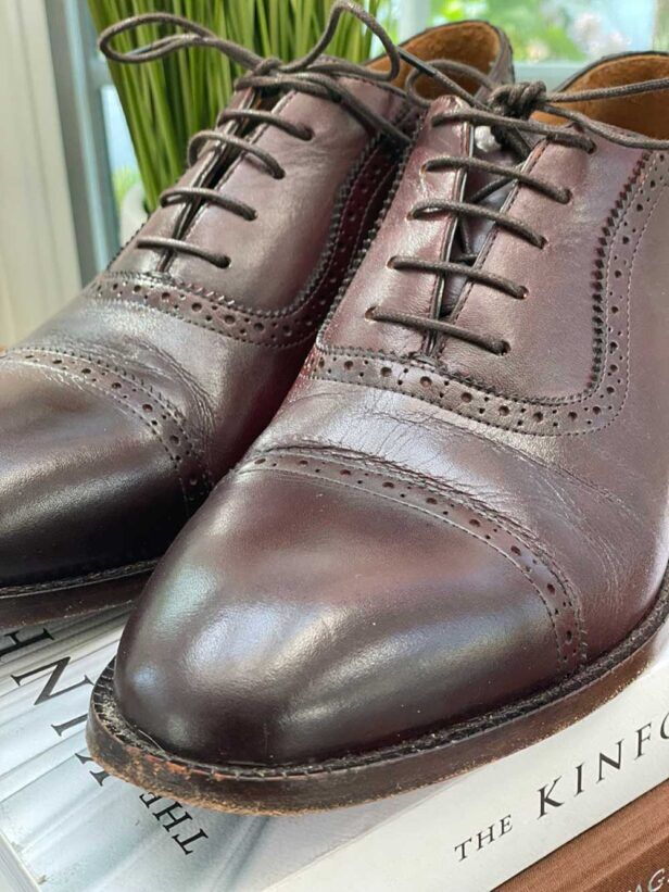 However, I would resist the temptation to polish too frequently. Each of my smooth leather Oxfords have arrived beautifully polished and coated with carnauba wax. But, in an attempt to take one pair’s shine to the next level, I found quite a bit of the polish came off! A clear coat restored most of the luster, though.