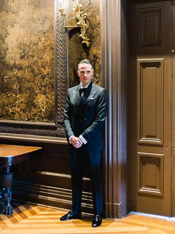 I’ve had a special relationship with Dominic Montefiore, the Creative Director of Edward Sexton, for a number of years now and when I told him I’d like to commission a dinner jacket for the reception–what’s wrong with having two looks at your wedding?–he was both flattered and surprised. He said, “Are you sure you want to do such a strong shoulder for your wedding?” The answer was, of course, yes. Not only have my tastes evolved in this area over the years, but I thought the occasion merited it.