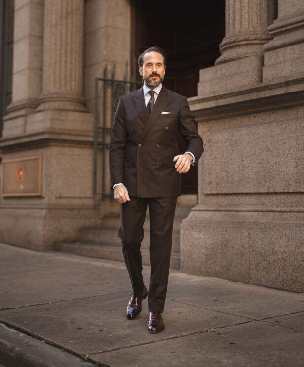 Now that you know where it came from, the next (and honestly only) thing you need to know about the no brown in town “rule” is that it is completely out of date. As long as you are dressing appropriately for business — in town or elsewhere — it no longer matters if you limit yourself to black, blue, or gray. And a dark brown double-breasted flannel suit is certainly dressed up enough for any traditional or classic business situation, even with a brown tie and brown shoes.