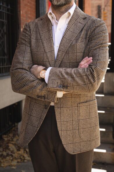 Speaking of casually tailored, I find that brown really enables that style of dressing due to the fact that it is warm, earthy, and generally seen as more casual (see: next outfit for more context). It has a way of appearing much less stuffy and buttoned up than blues and grays. Imagine this outfit with a navy blue Glen plaid jacket, light blue OCBD, and medium gray trousers, and you have to agree that it’s certainly more business casual than casually tailored.