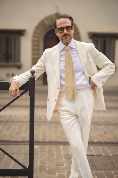 For me, a cream linen suit represents the epitome of summer elegance. It effortlessly combines style and sophistication with a light and breathable fabric, making it an ideal choice for any summer event where looking refined is a must.