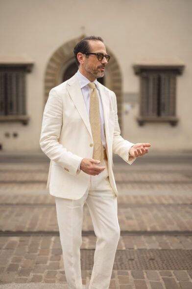 For me, there is no more sophisticated and refined summer suit than a cream linen suit. Its light color offers a fresh and clean appearance and exudes that effortlessly chic quiet luxury vibe. Of course, the styling can make all the difference as well.