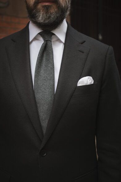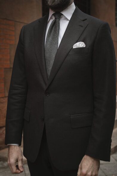 Although a black suit shouldn’t be the first suit you own, there is a place for one in every man’s closet. And as I believe winter is one of the best times to wear — and get the most out of — a black suit, having one in a flannel fabric like we offer in the He Spoke Style Shop is the absolute best option. It adds depth to your wardrobe and is sure to stand out.