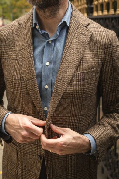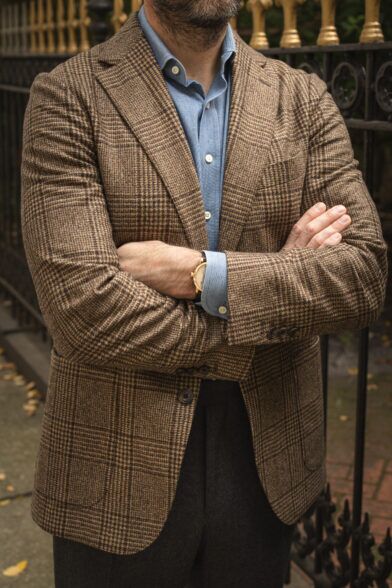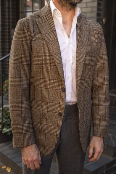 In all my talk about how classic and versatile a brown Glen plaid sport coat is, I suppose the one thing I’ve failed to mention is that it is something of a statement piece. Now, obviously we’re talking a much different level of statement compared to something from the defunct Thom Browne x Brooks Brothers Black Fleece line but if I’m being honest, no matter how classic a Glen plaid pattern is, it does stand out.