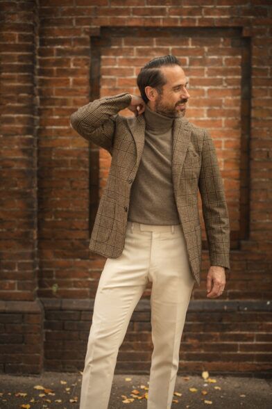 A brown Glen plaid flannel sport coat is an absolute must-have for your fall and winter wardrobe. It’s incredibly versatile, can easily be paired with jeans, and its classic pattern can be styled classically or in more contemporary scenarios. Let me know which look was your favorite and how you would style this piece down below in the comments.