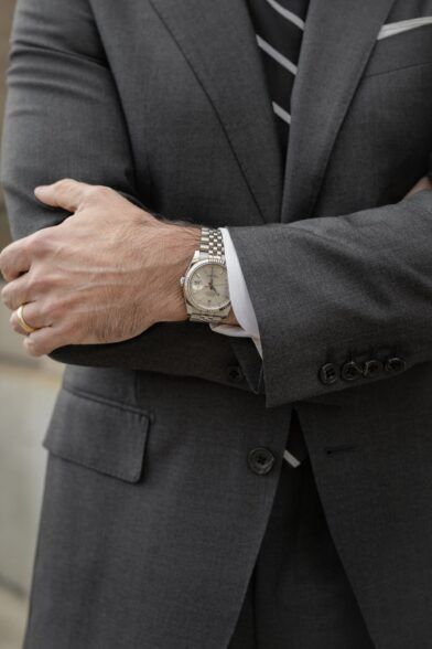 Of course you will want any accessories to complement the outfit rather than stand out and make their own statements. My classic Datejust along with a pair of wholecut Oxfords fit the bill perfectly.