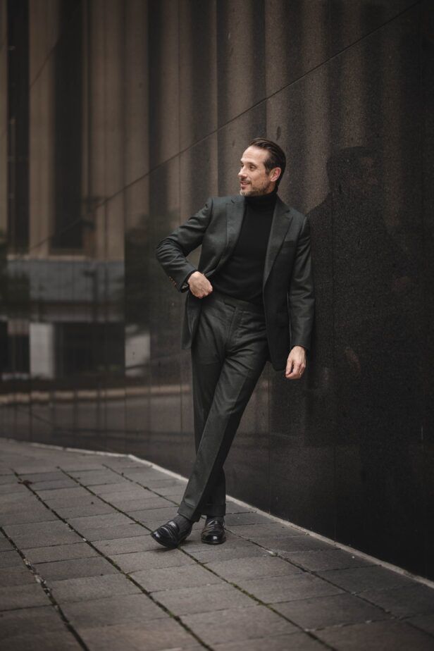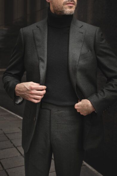 In my opinion, there is no better way to instantly give your suit an elegant and sophisticated look and feel than by adding a turtleneck. The suit itself is a simple garment, ditto for the turtleneck. Pair them together and it’s a win-win, especially when you’re combining soft luxurious fabrics like cashmere and flannel.