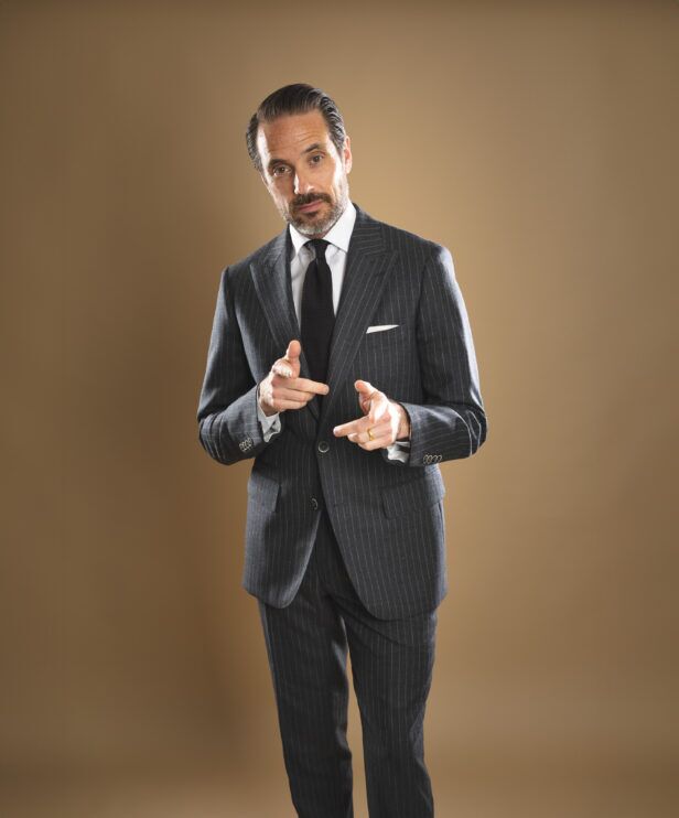 While a sport coat or suit jacket’s lapels help create a sense of elongation, you can get even more literal (and effective) by incorporating vertical lines. In terms of men’s clothing that means we’re talking about pinstripes or chalk stripes. These vertical lines draw the eye up and down, lengthening your figure, slimming you down, and creating the illusion that you are taller.