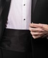 Here’s a version that takes classic and updates it just a bit for modern tastes. First of all, this is the lightest ivory that you’ll see. So if you’ve really got your heart set on a “white dinner jacket” and literally don’t mean ivory — I find that many guys use those terms interchangeably, sort of like sport coat and blazer — this is the dinner jacket for you. And second, instead of the most classic shawl lapel, here, we have a self-facing peaked lapel. A more modern look and feel for a more modern man.