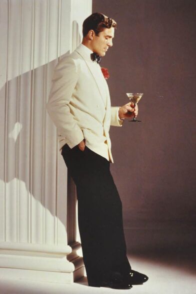The ivory dinner jacket first appeared in the early 1930s as a more “casual” — scare quotes absolutely necessary — and comfortable alternative for black tie dress in warmer climates. For those who had the occasion to wear black tie often, it was a nice and needed departure from the typically heavier fabrics worn for evening fêtes in luxurious tropical destinations.