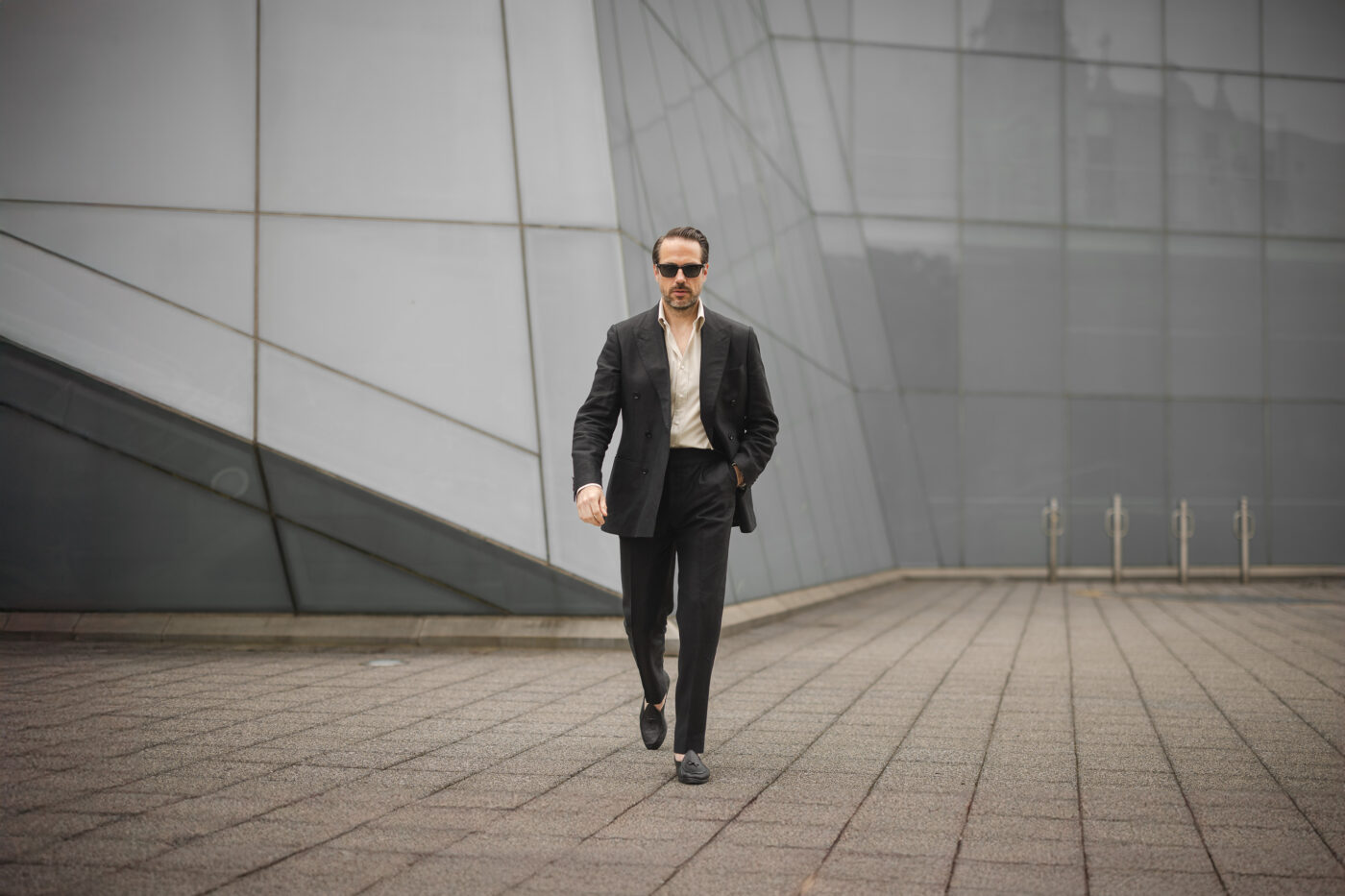 You don’t wear a black double-breasted linen suit in the summer because it’s practical. You wear a black double-breasted linen suit in the summer because it’s one of menswear’s ultimate power moves.