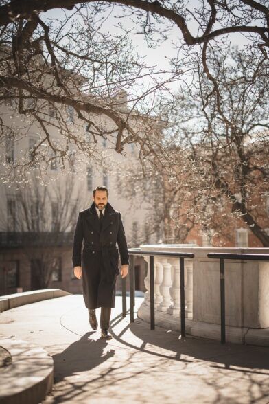 You might most associate them with formal dress, and it’s true that long coats are perfect if you’re heading to a formal event in cold weather. As discussed, the long coat will keep you warm and protect your nice clothes from the elements better than a shorter overcoat.