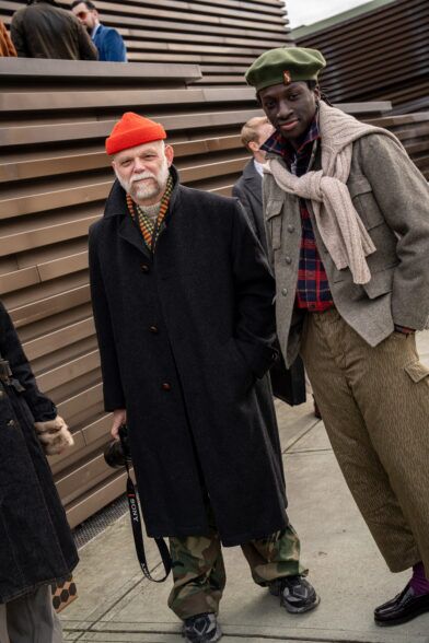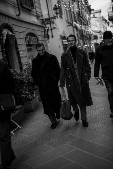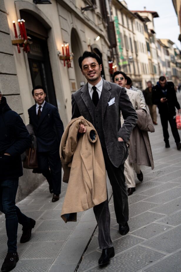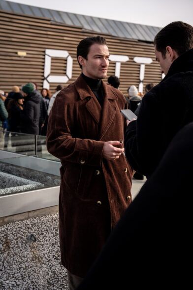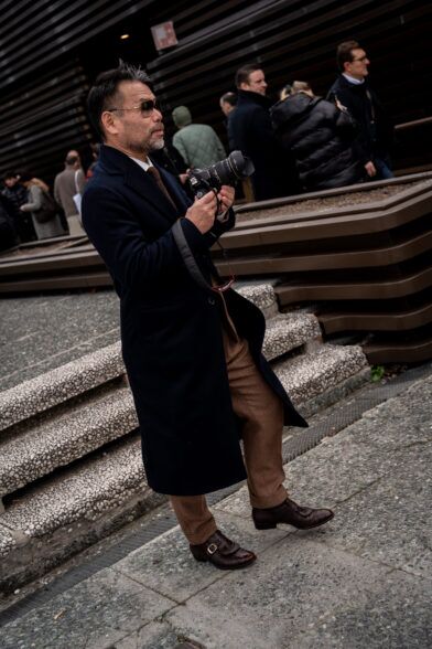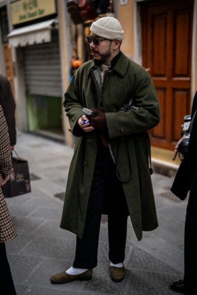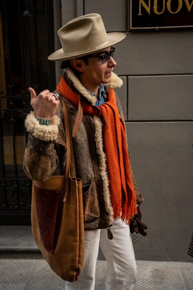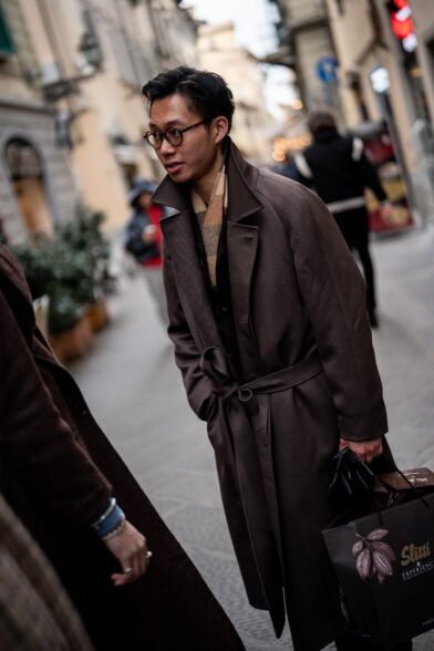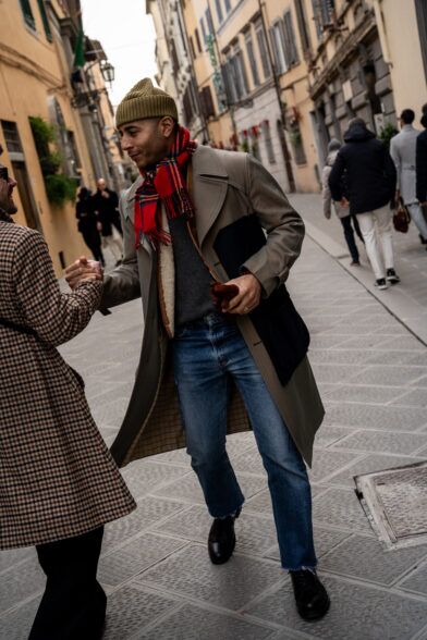 The second day of Pitti Uomo 105 brought with it cooler temperatures, overcast skies, and a light but persistent wind that highlighted the fact that it is indeed the middle of January. As a result, we saw an abundance strong coat games, interesting layering, and earthy color palettes. Check out some of the best street style shots we captured at and around the fair today.