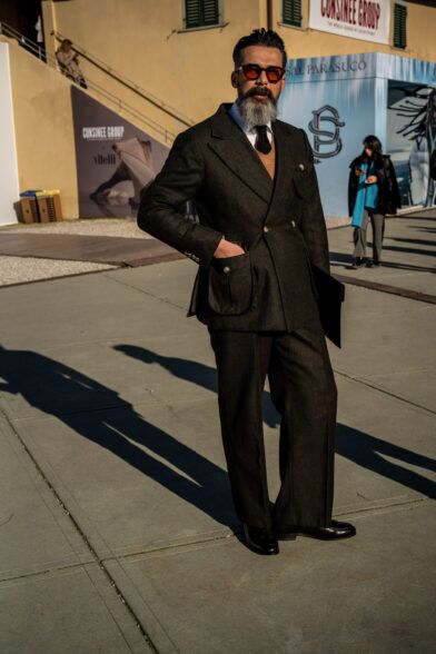 Pitti Uomo, the biannual menswear trade show in Florence, Italy, concluded its 105th edition yesterday. Although the fair runs for four days — Pitti Uomo 105 was January 9-12 — the final day around the Fortezza da Basso is typically much less active than the first three. Perhaps because of penultimate night excess of merriment, the Fortezza was something of a ghost town at the start of the day of Friday, but that quickly changed as the weary menswear faithful made their was to the grounds for one last go around. Here are some of the best looks our man on the scene, Rikesh Chauhan, captured to close out this edition.