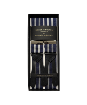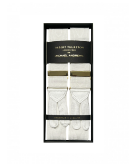 We offer a curated selection of the finest suspenders designed in collaboration with legendary maker Albert Thurston. Founded in 1820, Albert Thurston has been the world leader in superior suspenders for generations. Their braces are expertly crafted in the UK using the finest hardware and luxurious materials. This enduring quality has garnered loyalty among kings, celebrities and other men of sartorial distinction around the globe.