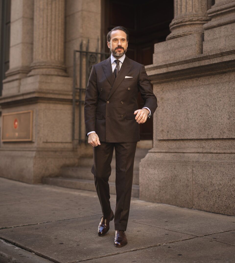 04. Brown Double-Breasted Suit Monochromatic Business Outfit Idea