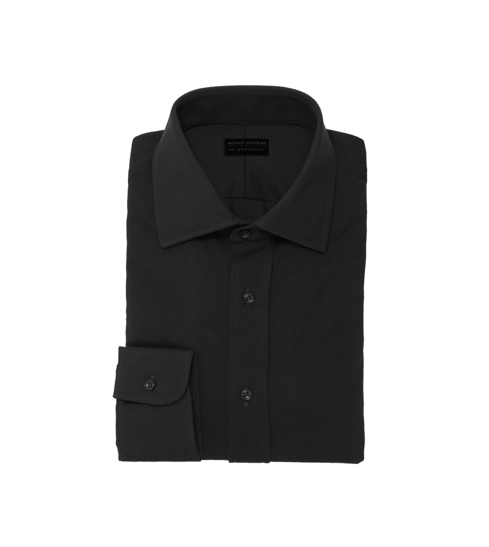 Our black cotton pique knit dress shirt is the perfect casually chic shirt for those in-between dress codes.