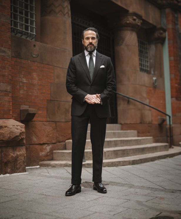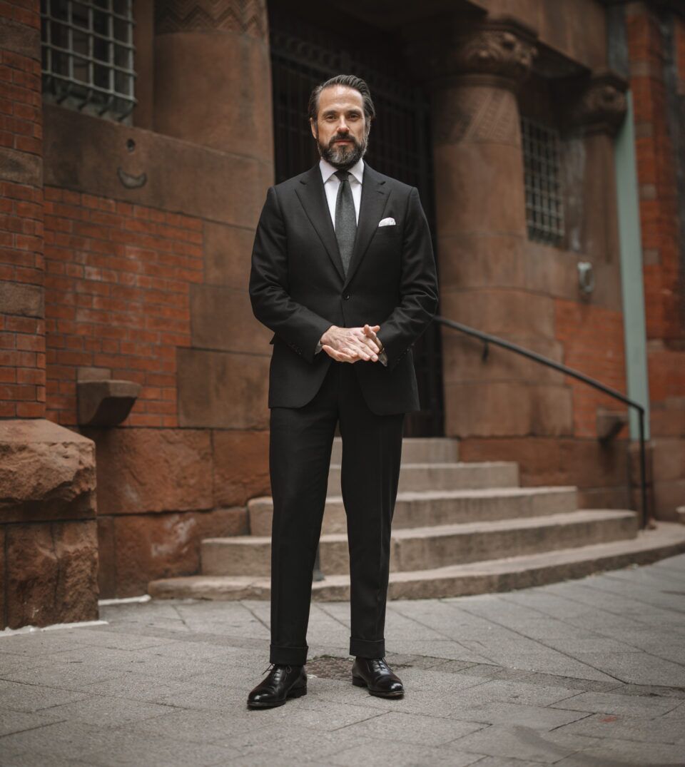 02. Black Flannel Suit With White Shirt And Gray Tie