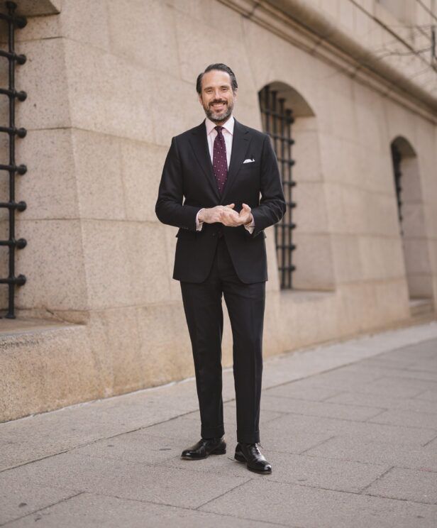 01. Black Flannel Suit With Pink Shirt & Burgundy Tie