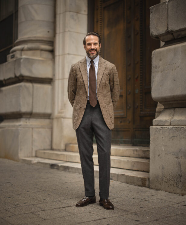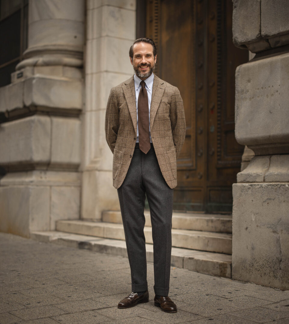 04. Brown Glen Plaid Sport Coat With Tie and Gray Flannel Pants