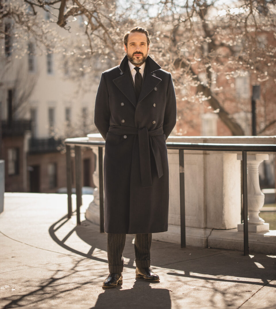 Learn MoreOur dark navy blue wool and cashmere blend greatcoat is an essential piece for your winter wardrobe. With it’s generous length, it harkens back to a more classic era of men’s style and is also guaranteed to keep you warm as hell.