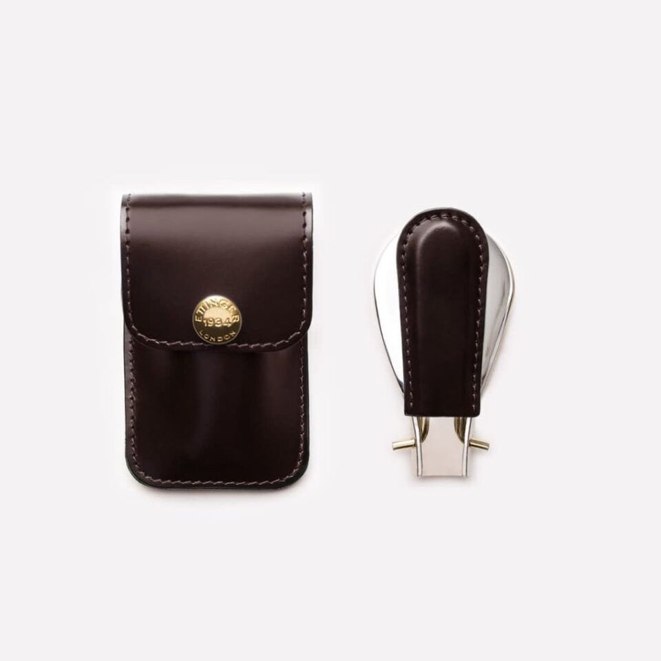 Elegant and compact, Ettinger’s travel shoe horn folds neatly into its stitched bridle leather pouch. Tuck it into your suitcase, briefcase, dopp kit or jacket pocket. An ideal addition to the jetset modern man’s travel essentials kit.