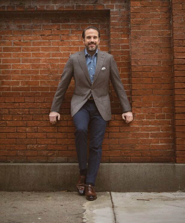 01. Brown & Gray Houndstooth Sport Coat With Denim Shirt