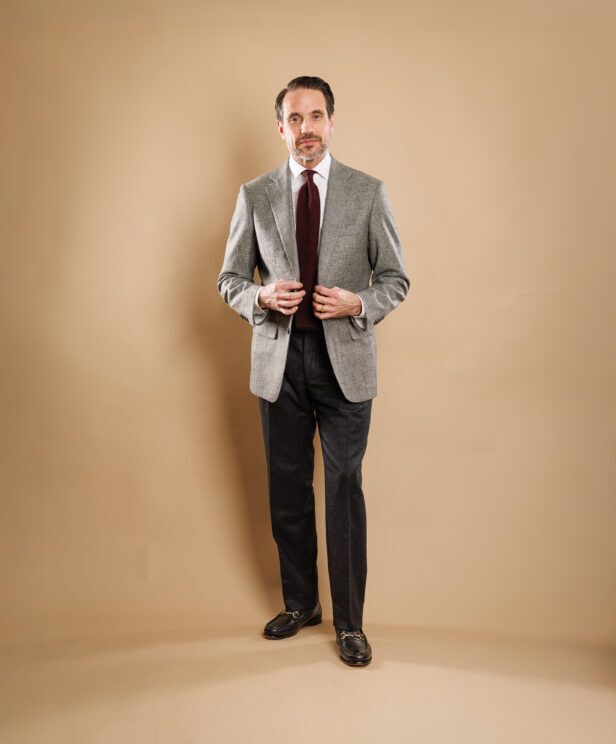I have always believed in maximizing every garment you own, and this jacket is the perfect example of that philosophy. The rich Loro Piana flannel texture allows it to break away from the full suit effortlessly, serving as an ideal anchor for a classic business casual look.