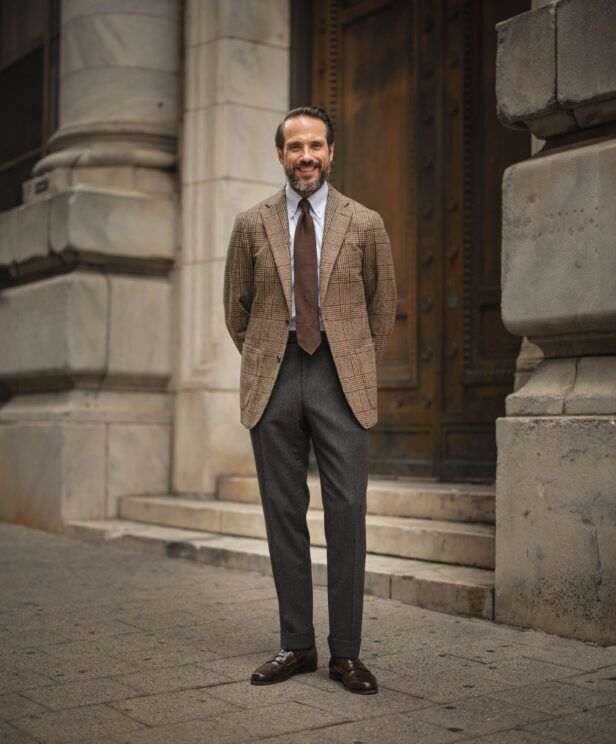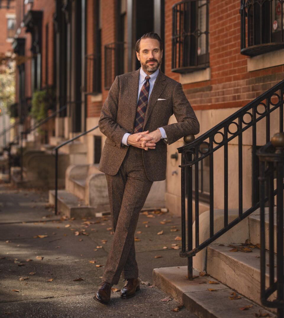 04. Brown Tweed Suit Outfit Idea With Plaid Tie