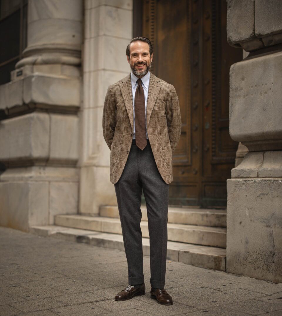 05. Brown Glen Plaid Sport Coat With Tie and Gray Flannel Pants