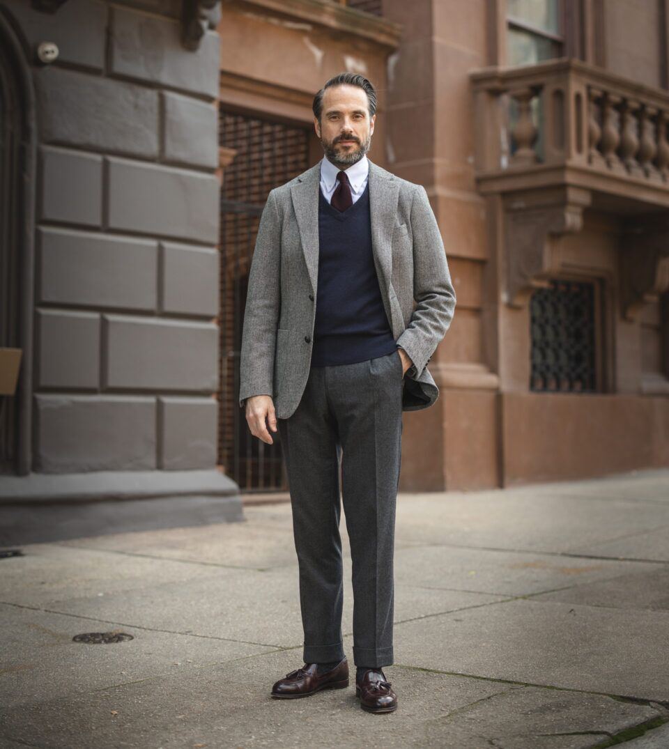 02. Gray Tweed Sport Coat With Sweater Business Casual Outfit Idea