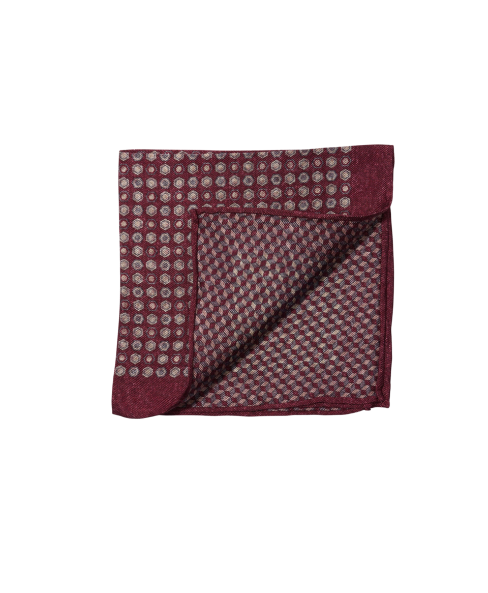 Maroon, Grey & Ivory Medallion & Cubes Double Sided Pocket Square