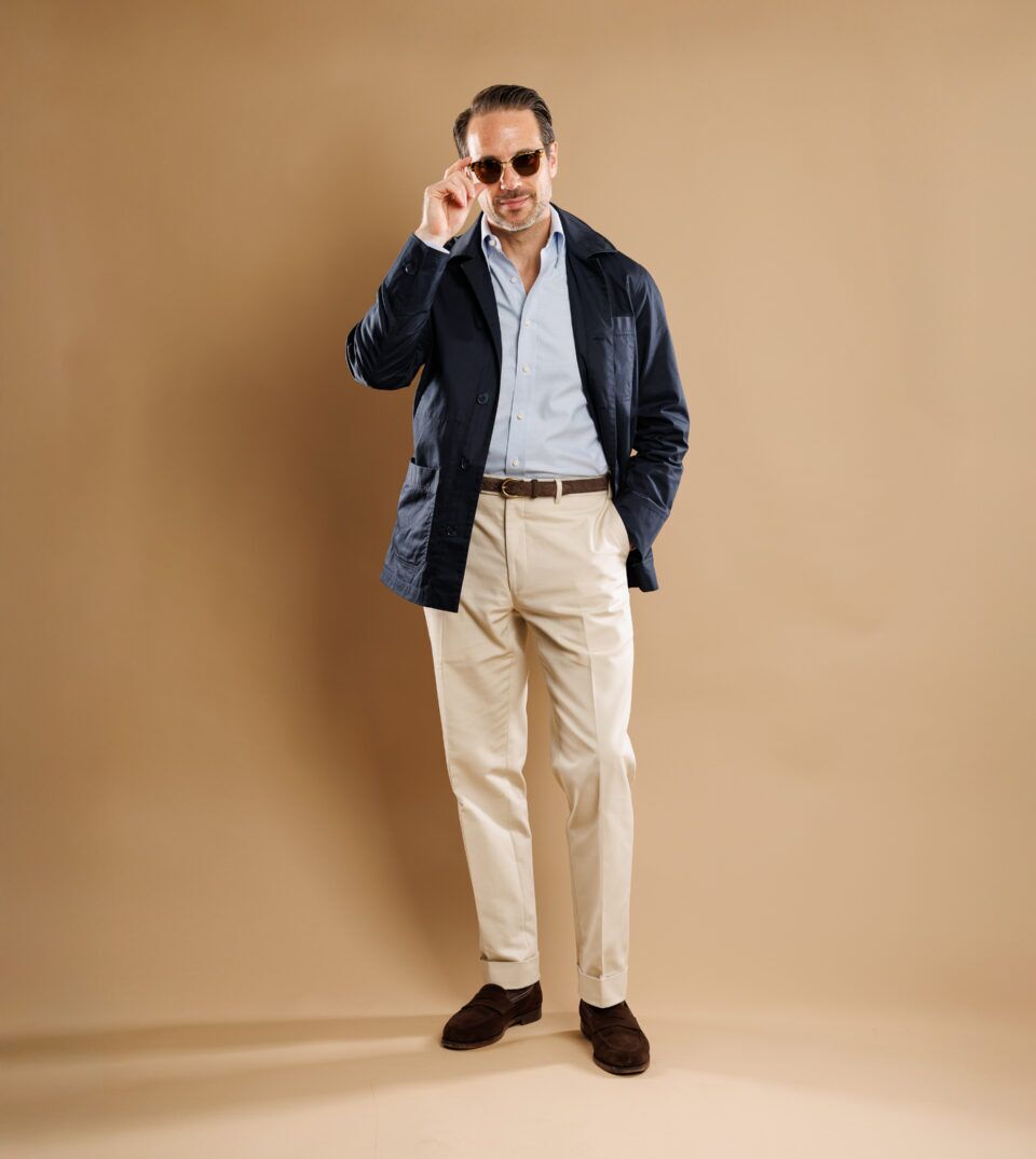 03. Navy Chore Coat Sharp Casual Outfit Idea