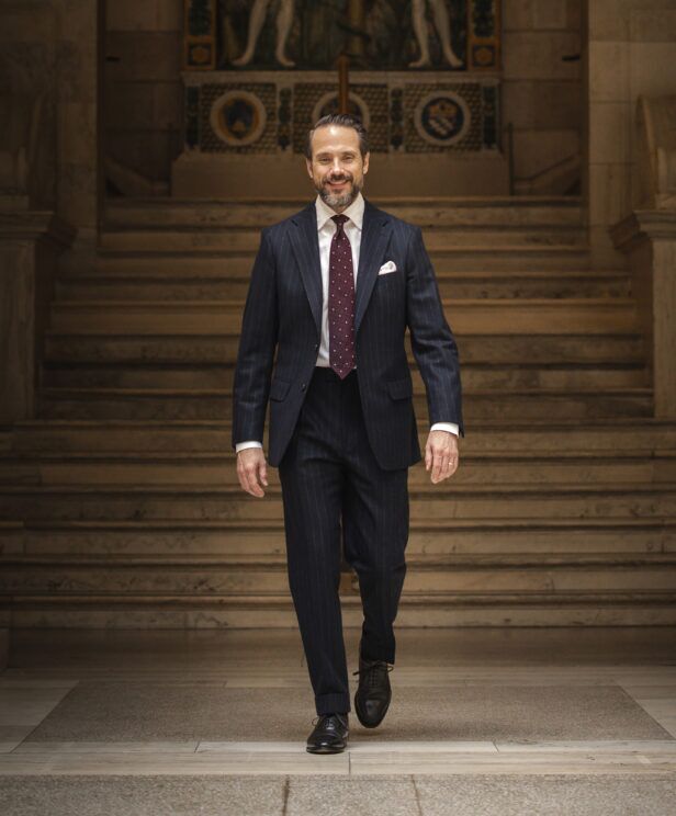Learn MoreWe firmly believe that a navy chalk stripe flannel suit should be a winter staple of every man’s wardrobe. How much do we believe that? Well, we believe it so much that we’re offering two different versions of the navy blue chalk stripe flannel suit. Consider this one a complement to our other offering. With a slightly wider white chalk stripe, this is a slightly more casual expression of the classic winter suit that allows for “rule bending”–think, more sprezzatura, less banker. Pair it with a classic camel overcoat, bengal stripe shirt, brown grenadine tie, and a pair of cap toe oxfords for some timeless winter style.