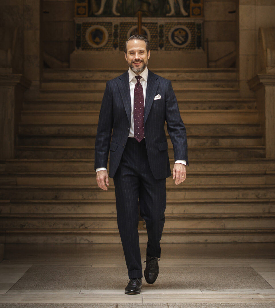 Learn MoreWe firmly believe that a navy chalk stripe flannel suit should be a winter staple of every man’s wardrobe. How much do we believe that? Well, we believe it so much that we’re offering two different versions of the navy blue chalk stripe flannel suit. Consider this one a complement to our other offering. With a slightly wider white chalk stripe, this is a slightly more casual expression of the classic winter suit that allows for “rule bending”–think, more sprezzatura, less banker. Pair it with a classic camel overcoat, bengal stripe shirt, brown grenadine tie, and a pair of cap toe oxfords for some timeless winter style.