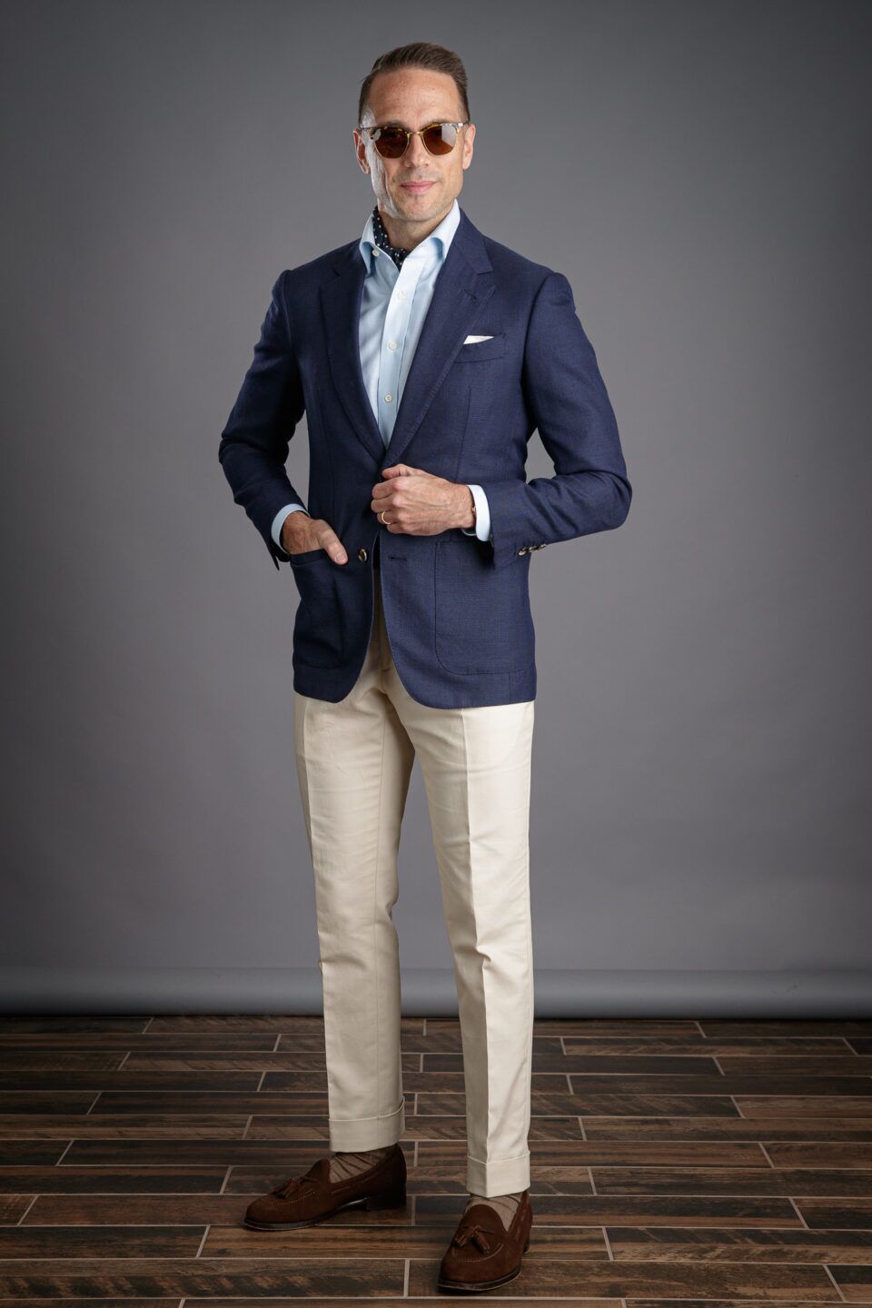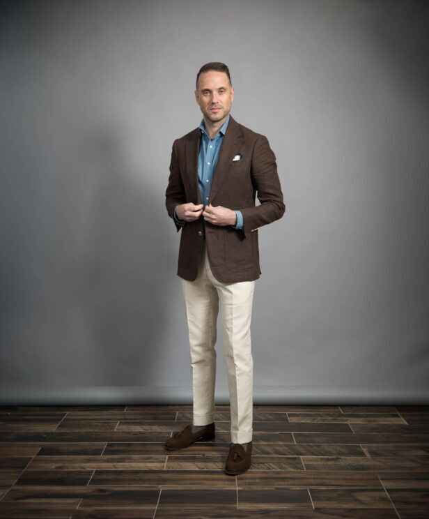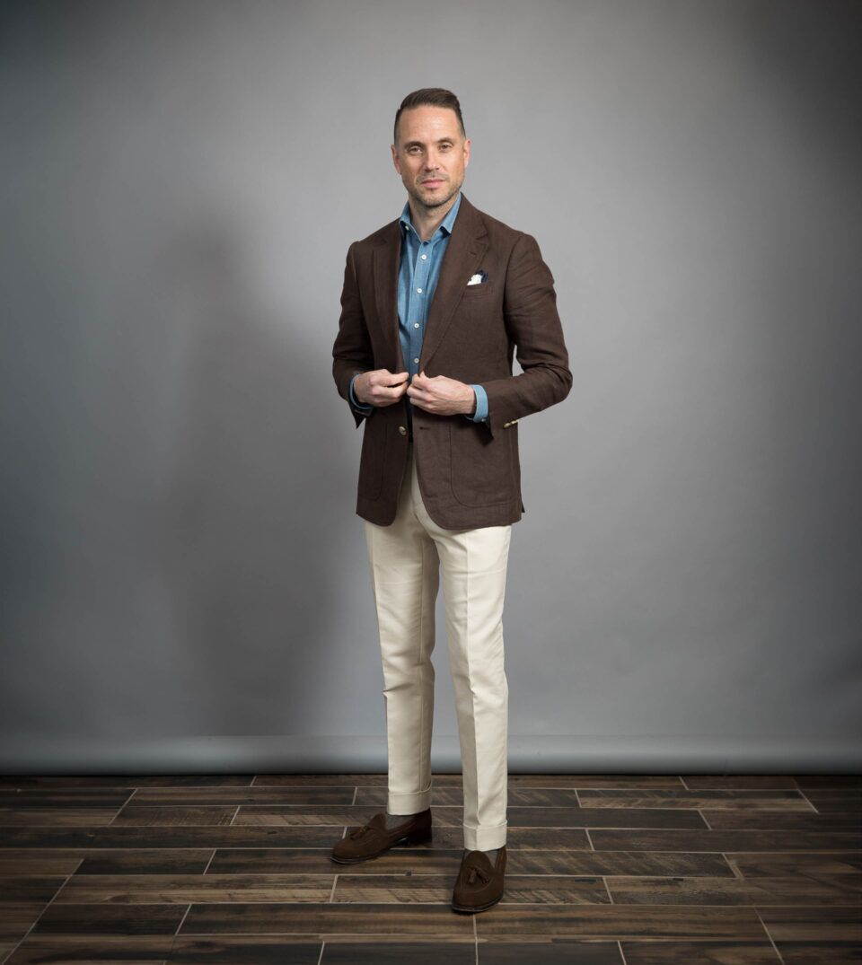 03. Chocolate Linen Sport Coat with Denim Shirt