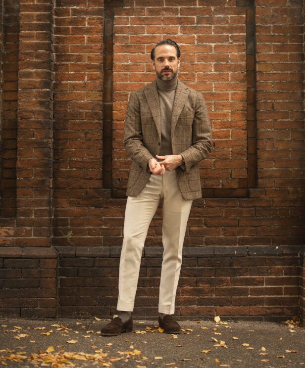 02. Glen Plaid Sport Coat with Tan Turtleneck and Chinos
