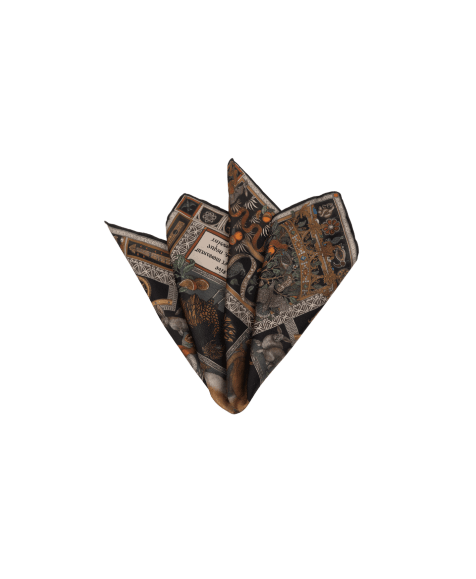 $145‘They are called ‘animate beings’, because they are animated by life and moved by spirit… but they are not beasts.’ Isodore of Seville [7th century CE] (Etymologies, Book 12, 1:3) With a sweet nature malleable to the will of higher powers, these creature’s hearts are loyal and true. Vulnerable and tame, their joyful innocence is a blessing. This truly original pocket square is created by Sabina Savage. Each piece is printed and hand finished by artisans in Como, Italy. The detailed illustrations are carefully engineered around to create unique pocket squares with a signature aesthetic.