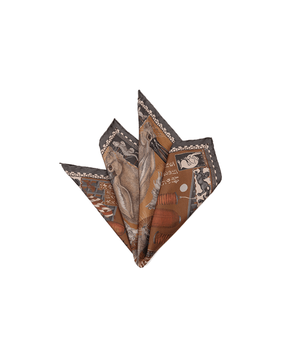 This truly original pocket square is created by Sabina Savage. Each piece is printed and hand finished by artisans in Como, Italy. The detailed illustrations are carefully engineered around to create unique pocket squares with a signature aesthetic.
