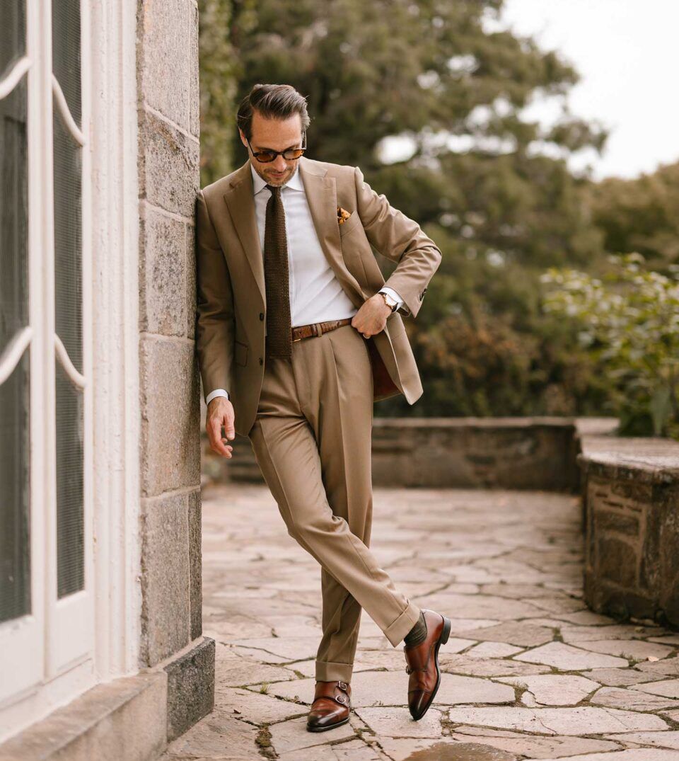 04. Solaro Suit with Knit Tie And Double Monk Straps