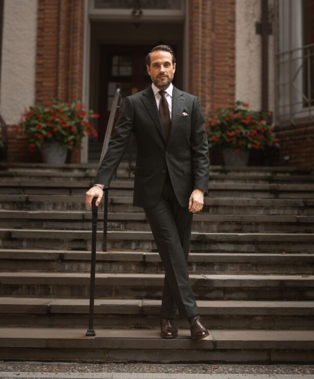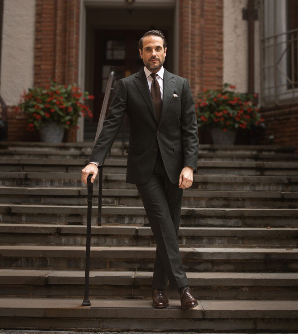 05. Forest Green Flannel Suit with White Shirt and Brown Tie