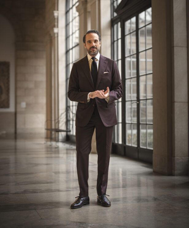 03. Burgundy Suit With White Shirt and Black Tie