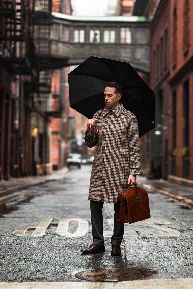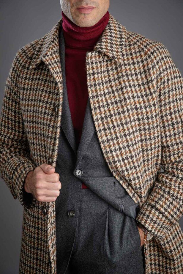 The first thing that stands out, obviously, is the pattern. It’s a big and bold houndstooth check. Patterns like this are great during the winter because they provide a big contrast to what is typically a more minimal and bleak landscape.