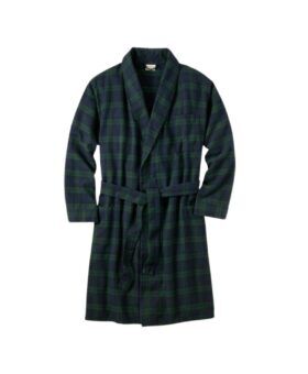 During the wintertime, I think it’s great to have a robe in a seasonal pattern, like a tartan plaid. I recommend checking out L.L. Bean because they have some great options, and they’re also very reasonable in terms of price.